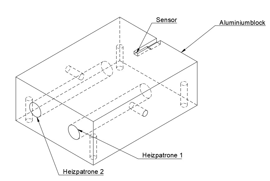Aluminiumblock (I), Heizelemente (HP1, HP2) und einem Referenzsensor.