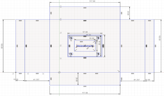 Fusion360 Zeichnung Heizblock mit Heizelementen