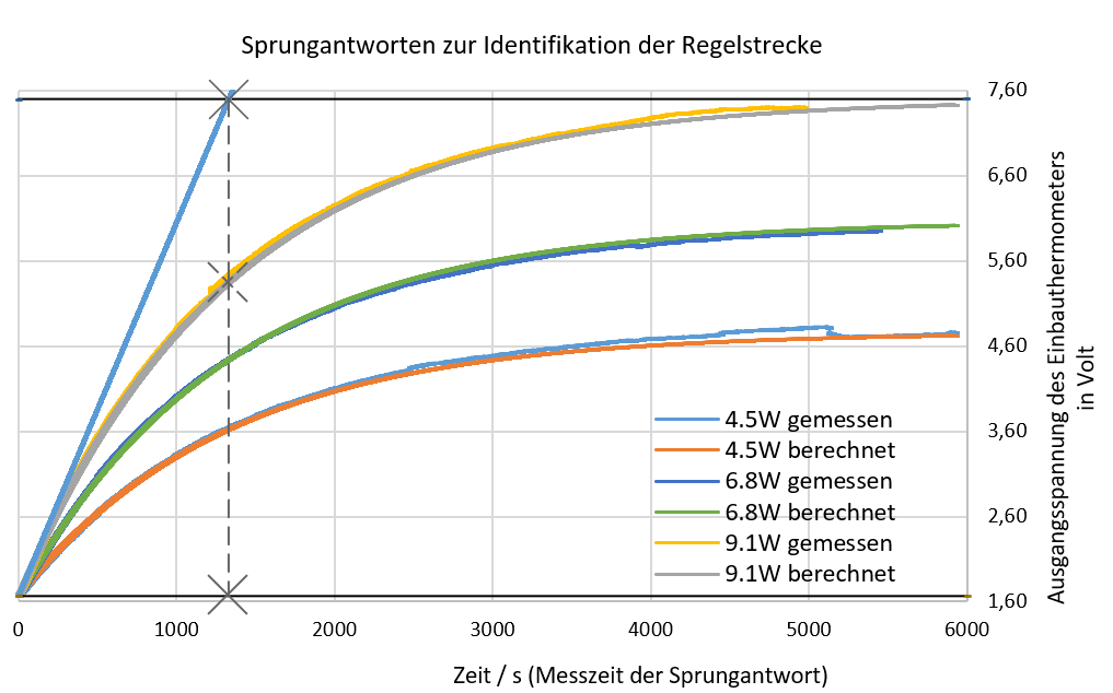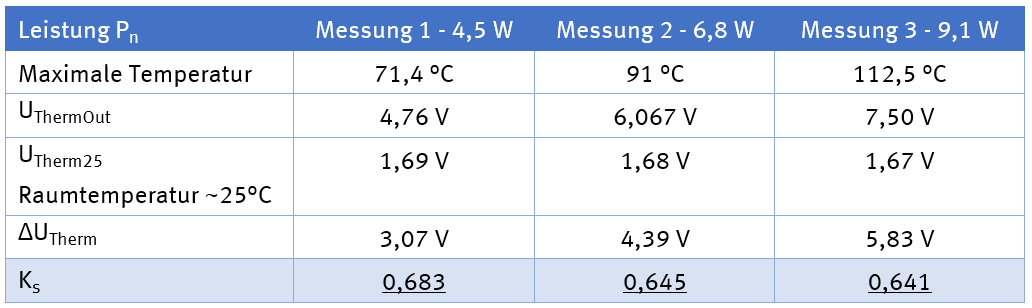 wurde der zuvor konstruierte Heizblock mit einer konstanten Leistung mit 4,5W, 6,8W und 9,1 W geheizt, bis sich eine Sättigung einstellt.